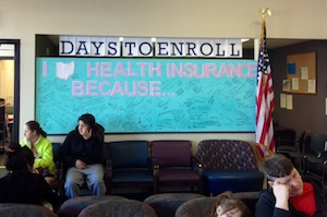 A steady stream of people filed through the doors of the Neighborhood Family Practice, a free clinic on Cleveland’s near west side Monday, but Leah Pallant, an outreach and enrollment coordinator at the clinic expected many of them to leave without actually selecting a plan before the midnight deadline.