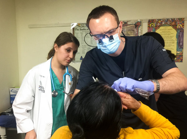 The refugees don’t use the free clinic forever. The staff helps them find more permanent care. If patients need a referral to a specialist, they may have to find a way to pay for that visit.