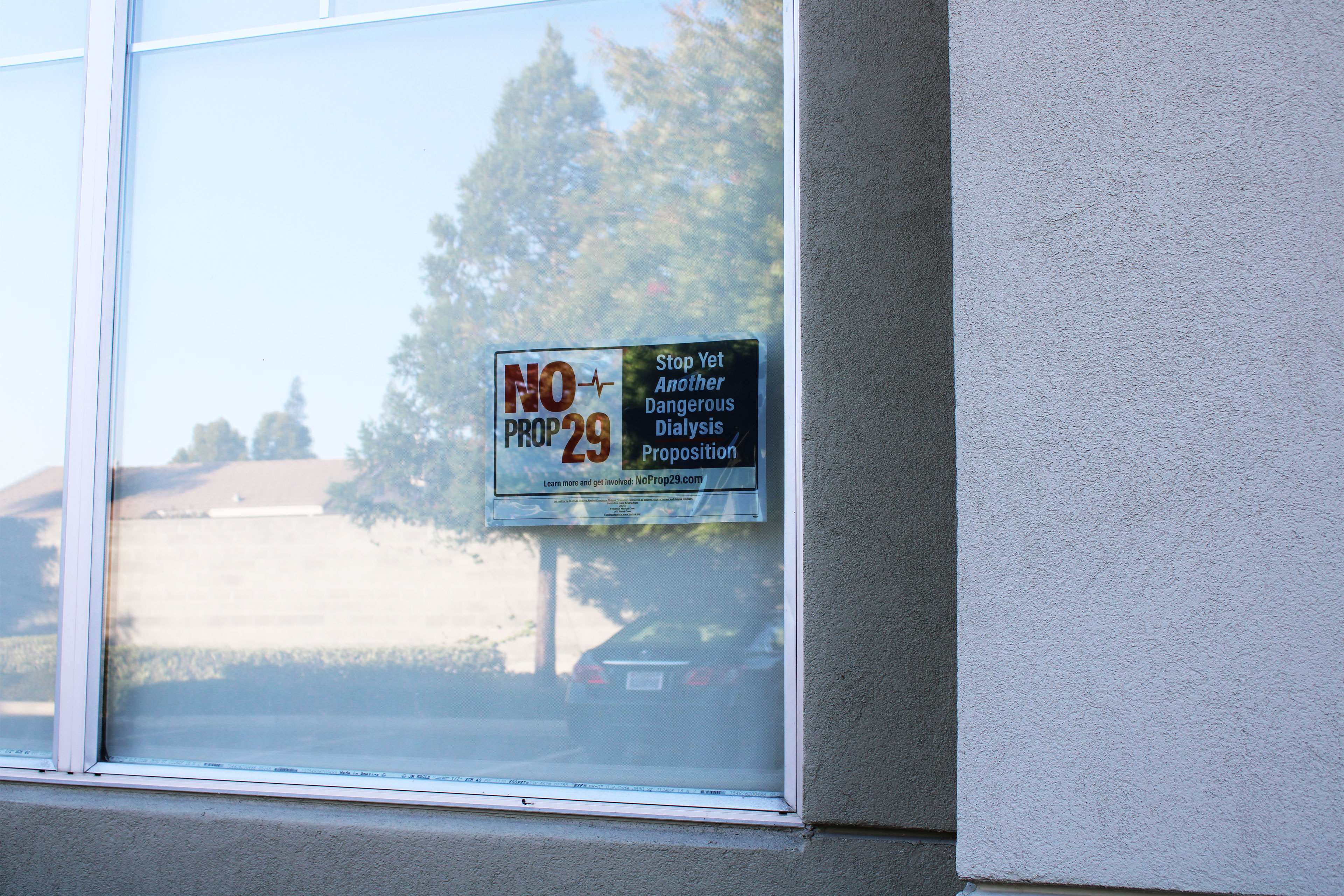 Sherwin fears her access to the clinic is in jeopardy. A sign in the clinic’s window tells patients and visitors to vote “no” on Proposition 29, the third statewide dialysis initiative in five years. It would impose new requirements on dialysis clinics, such as requiring a doctor to be on hand during treatments.