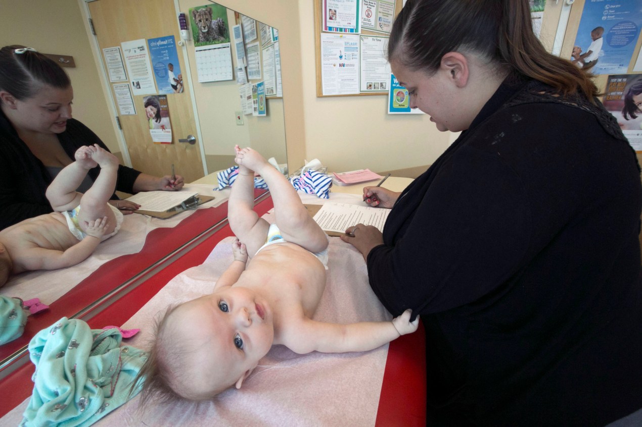 “I was really afraid to become a parent,” Pike, 33, told Gillespie, as her infant daughter Payton rolled over on the exam table. “I was afraid that I was going to be a really mean person.”