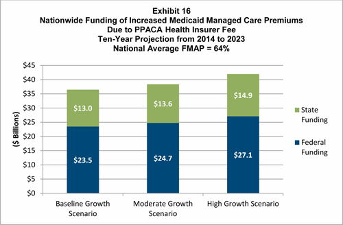 A by the actuarial firm Milliman Inc. said the tax will cost the Medicaid program between $36.5 billion and $41.9 billion over 10 years. At least $13 billion will be borne by states,and at least $23.5 billion by the federal government, based on the state-federal Medicaid matching formula, according to the report paid for by the , which represents private health plans that cover people on Medicaid. According to the America’s Health Insurance plans, the tax overall .