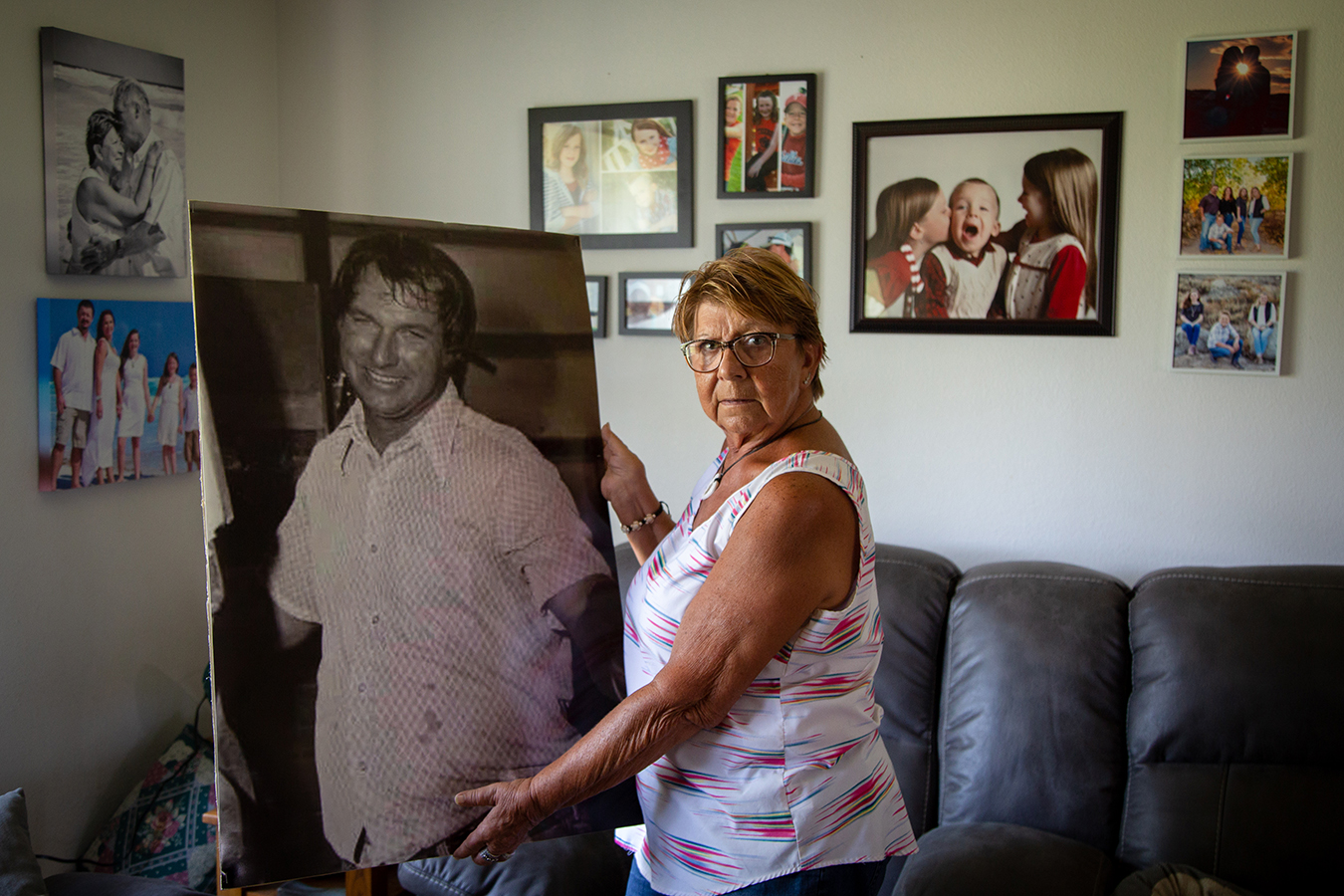 Linda Findley holds a photo of her husband, Robert. (Christopher Smith for KHN)